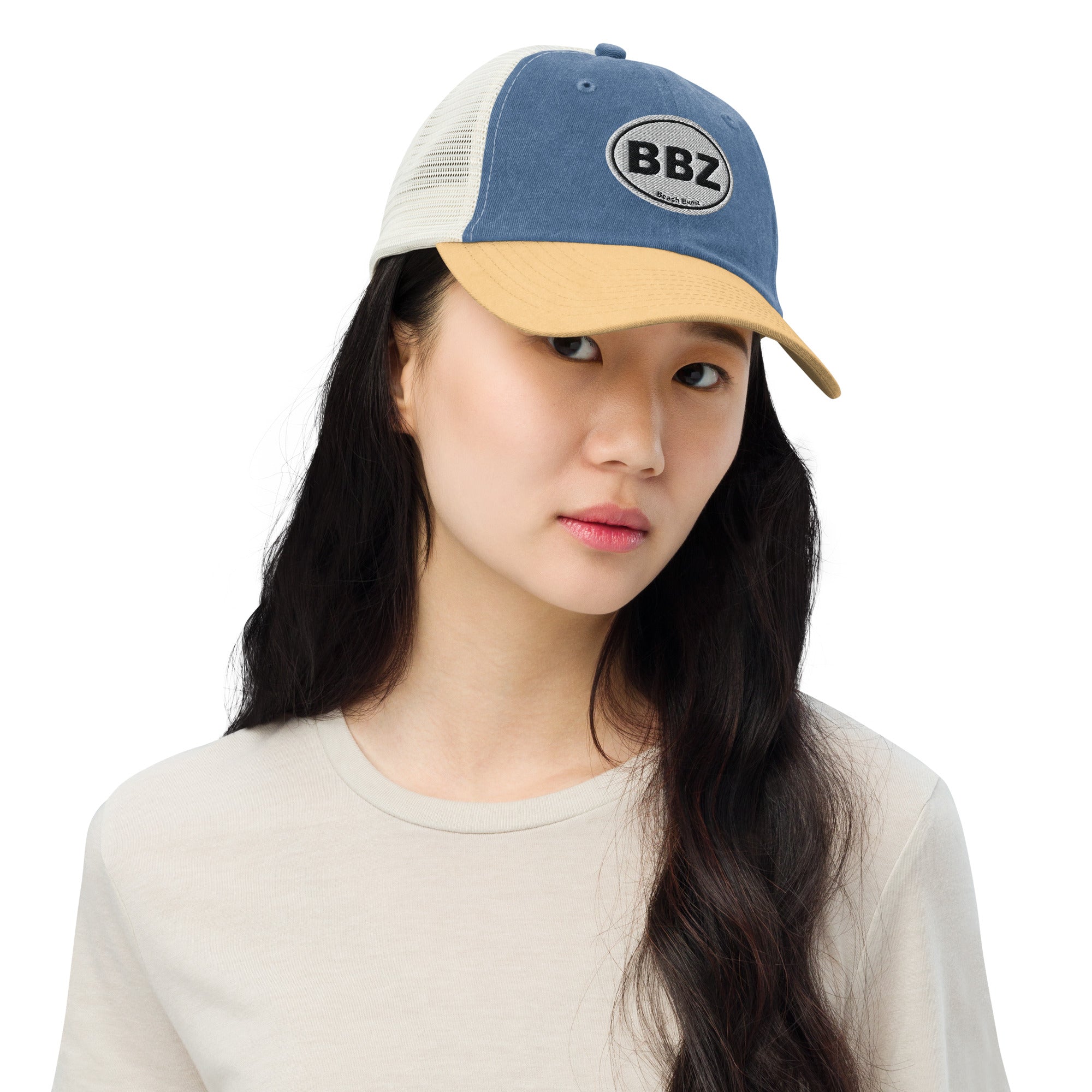 • Pigment-dyed twill front, mesh back
