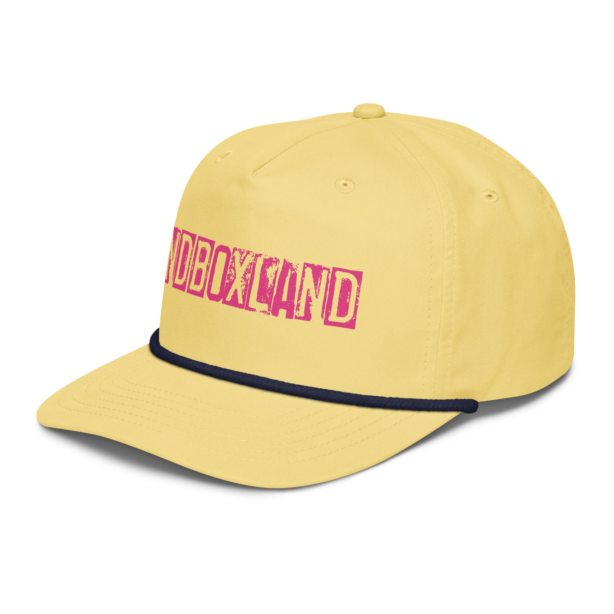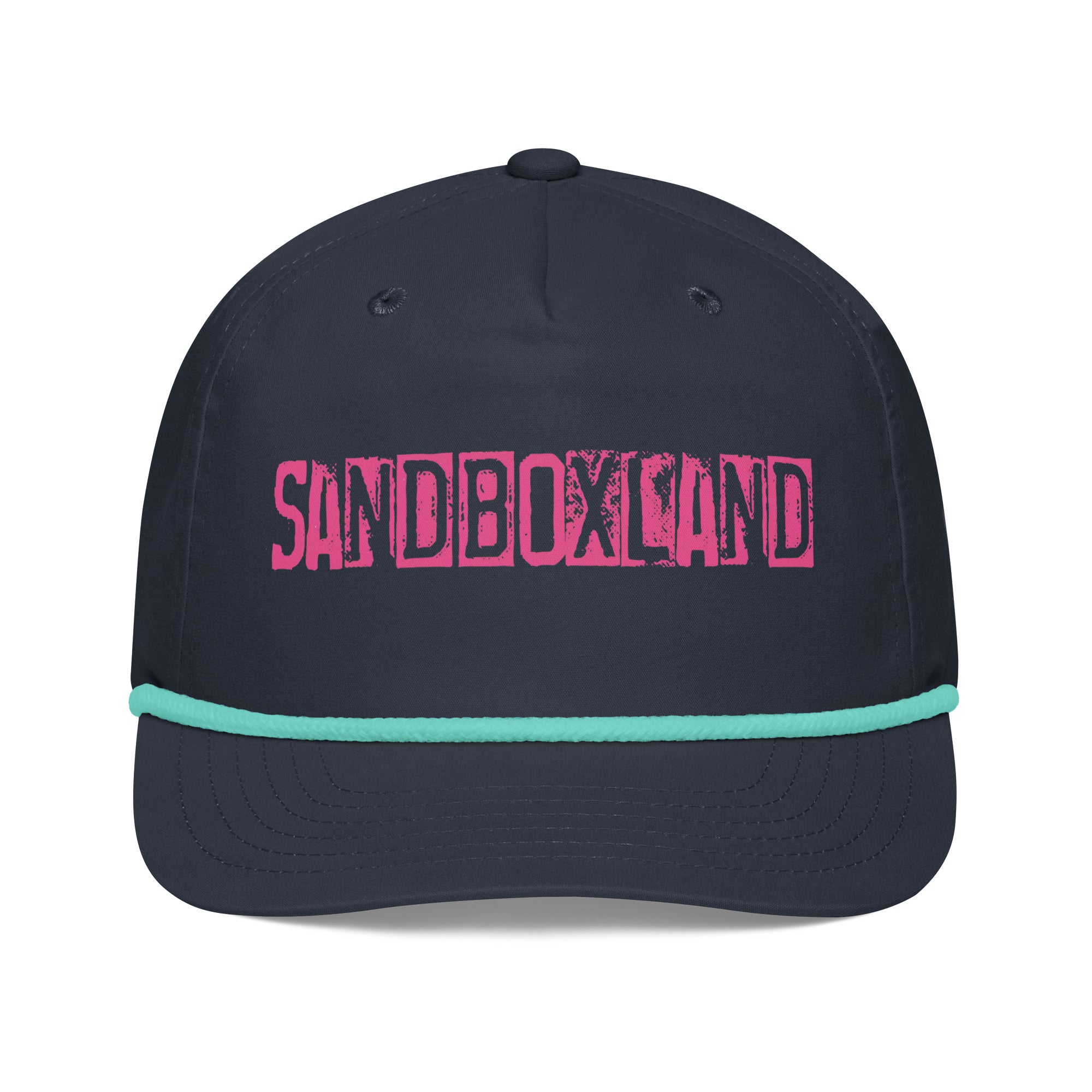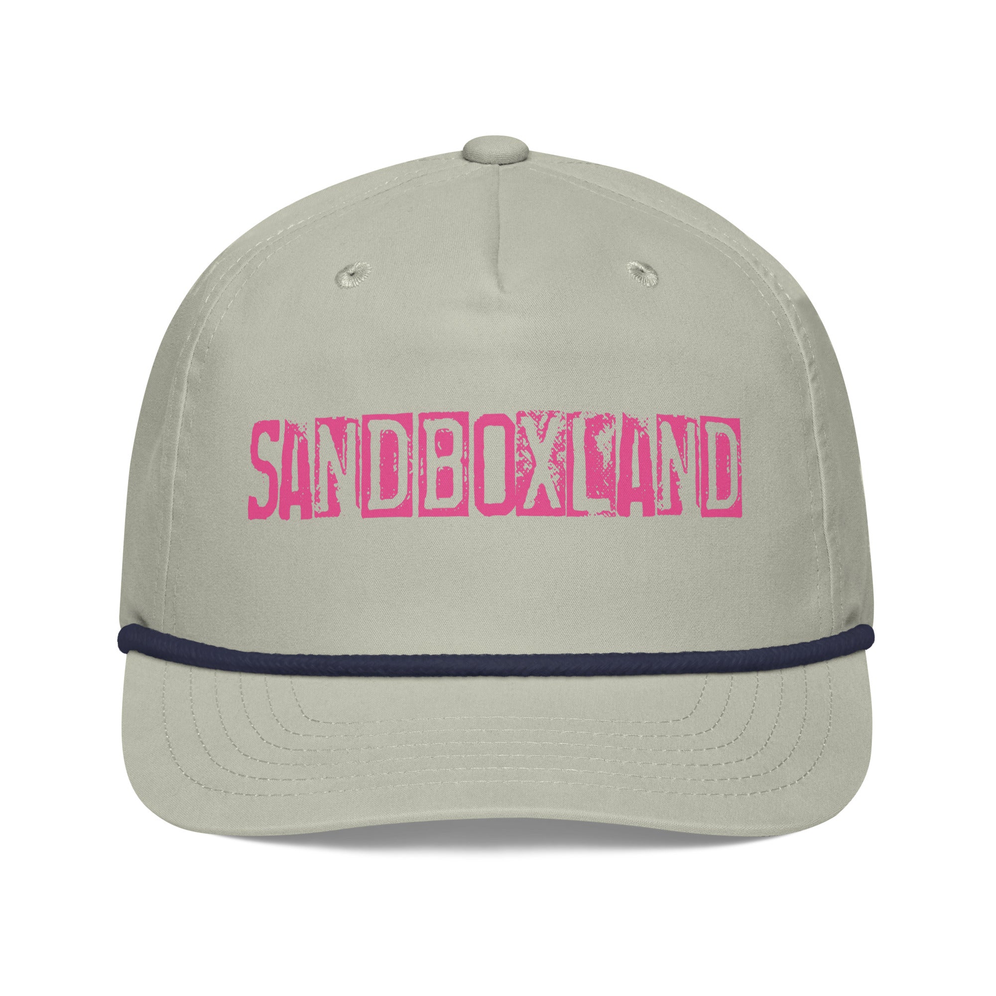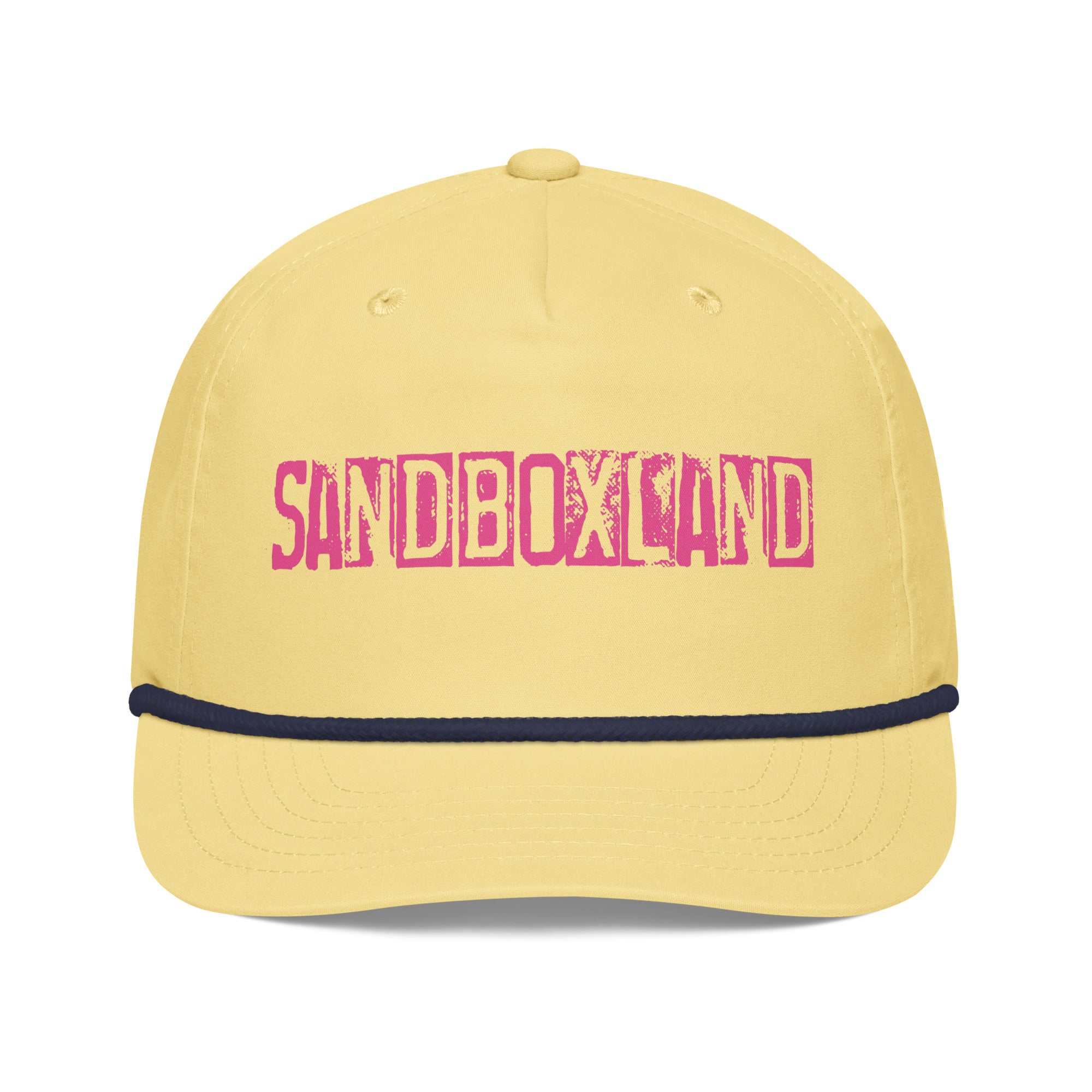 Keep it clean, classic, and Sandboxland-approved. The Sandboxland Golf Rope Hat features a bold Sandboxland logo across the front, paired with timeless rope detail for that vintage golf-course aesthetic. With its structured 5-panel fit, semi-curved bill, and adjustable snapback, this cap brings effortless style whether you’re on the green, at the beach, or out on the town.