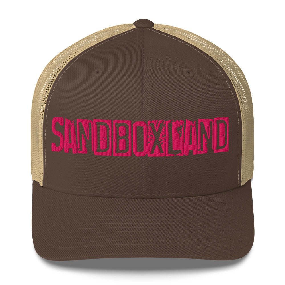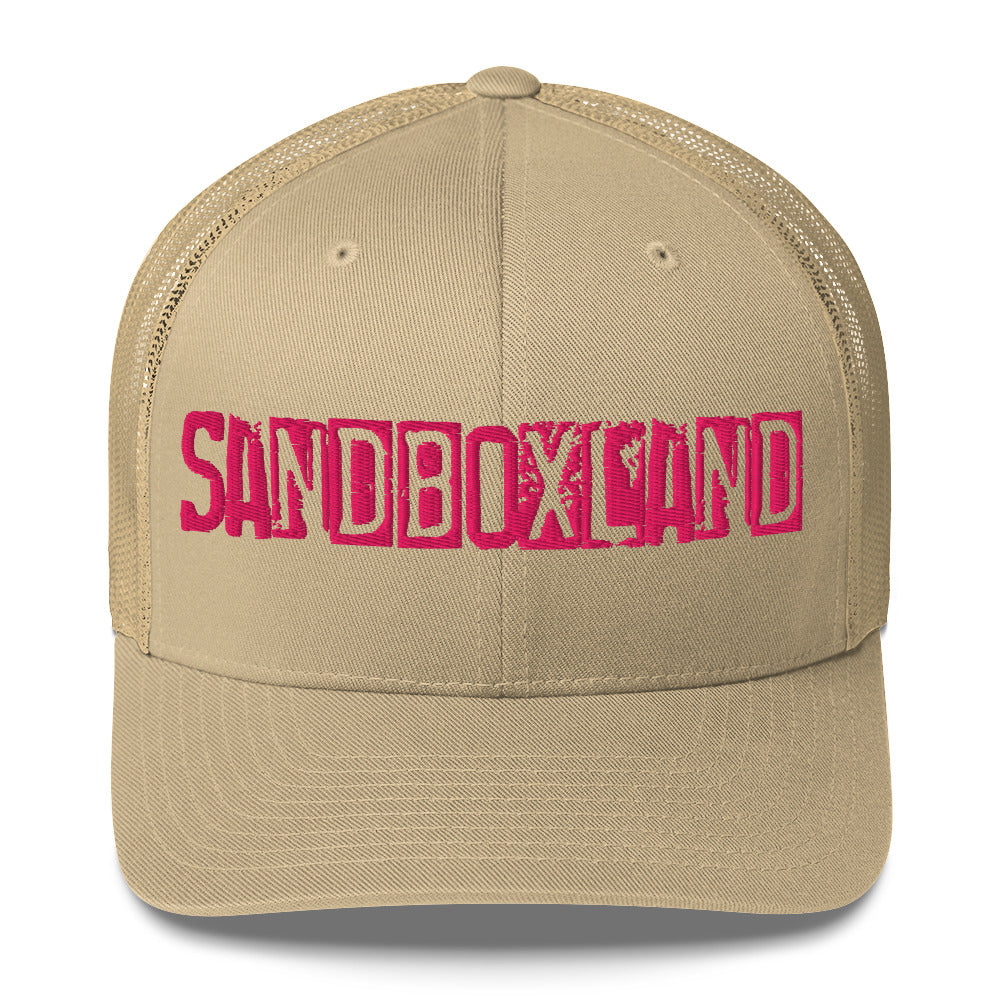 A fresh take on a timeless classic. The Sandboxland Trucker Hat keeps it simple with bold Sandboxland lettering across the front and breathable mesh in the back—perfect for long days in the sun, at shows, or on the move. With its structured six-panel fit, mid-profile crown, and adjustable snapback, this hat brings comfort and style wherever Sandboxland takes you.